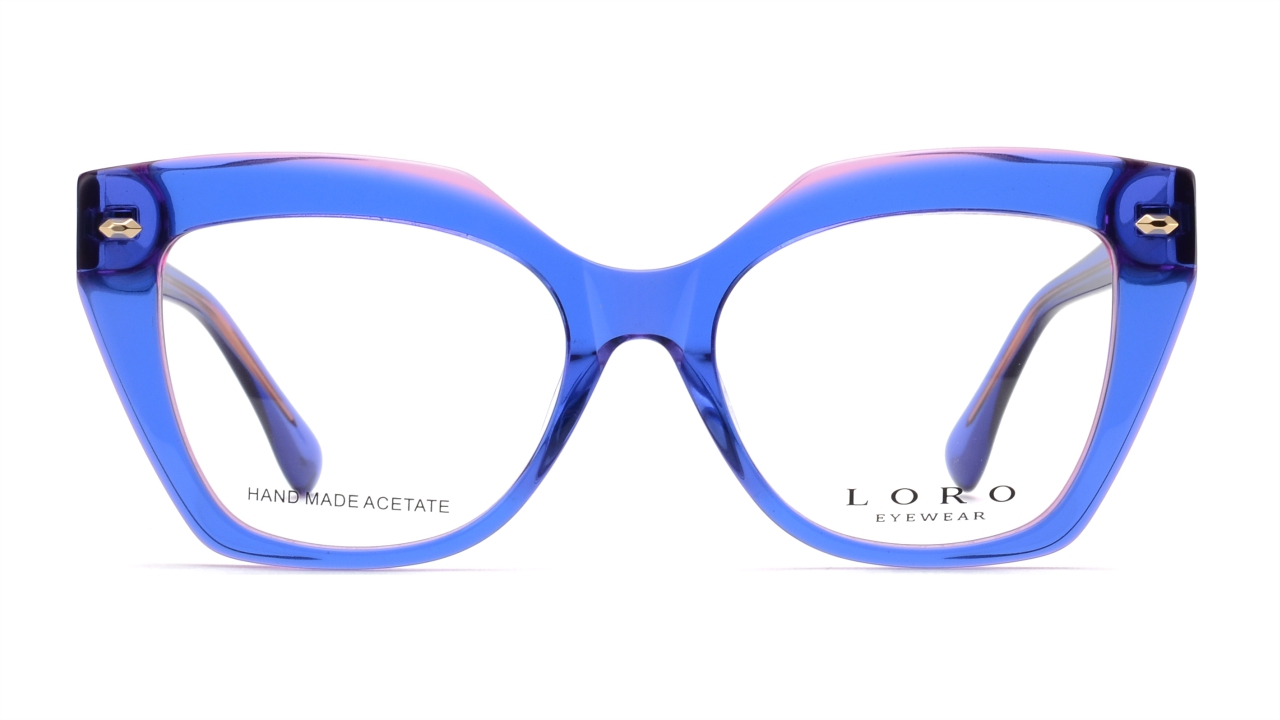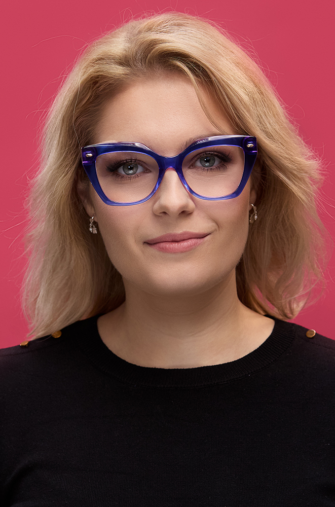 Te damskie oprawki o wyrazistym, kwadratowym kształcie zostały wykonane z lekkiego i trwałego acetatu. Ich front łączy intensywny odcień niebieskiego z akcentami różu, tworząc świeże i dynamiczne zestawienie barw. Transparentna struktura dodaje im lekkości, a jednolite, błękitne zauszniki sprawiają, że całość wygląda nowocześnie i stylowo.