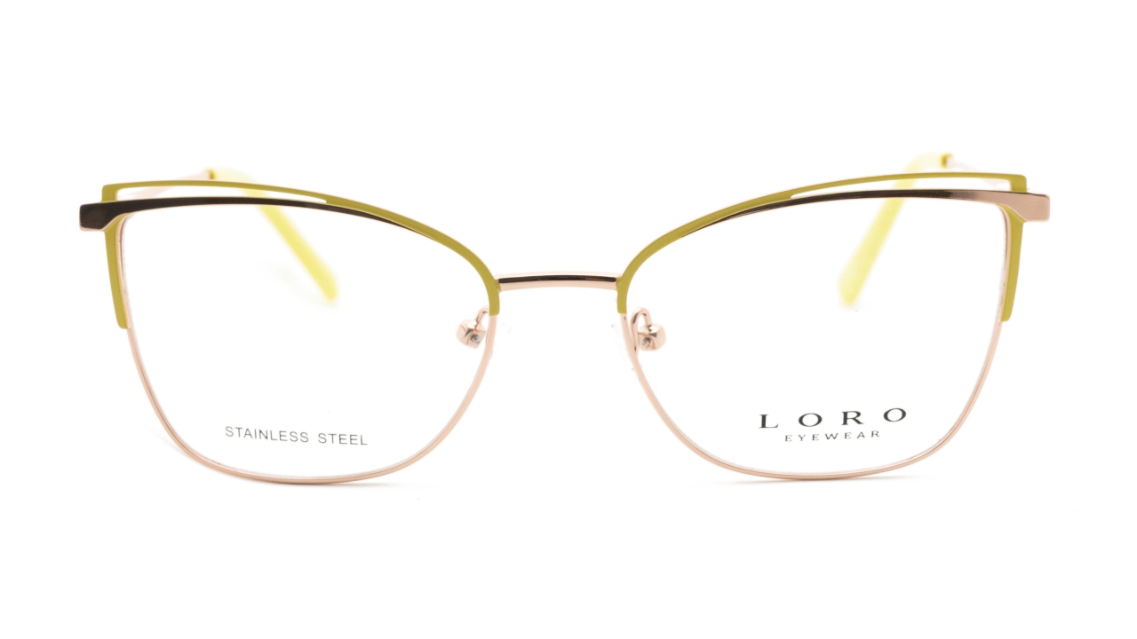 Szykowne oprawki o kocim kształcie to propozycja dla kobiet ceniących subtelną elegancję z nowoczesnym akcentem. Model wykonany z lekkiej stali nierdzewnej w odcieniu różowego złota z pastelowozielonym detalem na górnej krawędzi frontu, uzupełniony został o zauszniki zakończone elementami w tej samej delikatnej, zielonej tonacji. Ten świeży, kobiecy wariant kolorystyczny świetnie sprawdzi się zarówno na co dzień, jak i w bardziej formalnych stylizacjach.