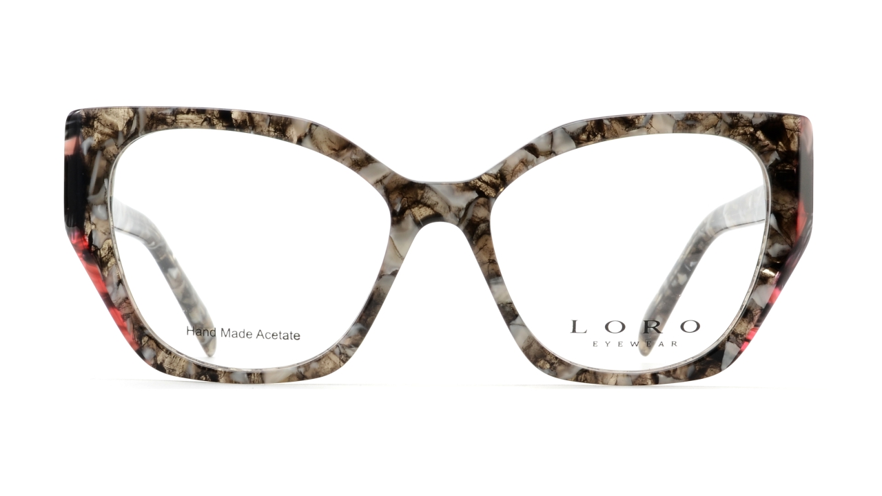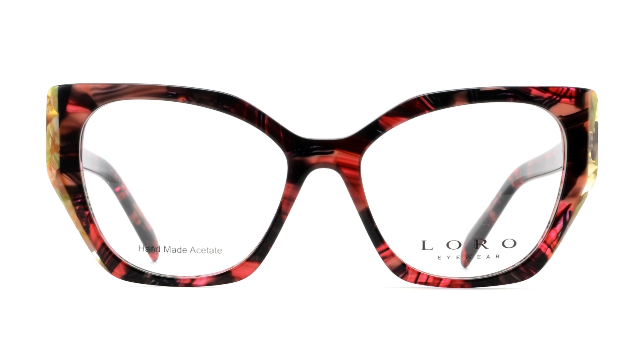Eleganckie damskie oprawki o lekkim kocim kształcie, który dodaje twarzy wdzięku i podkreśla rysy. Front i zauszniki w efektownym, wielobarwnym wzorze łączącym odcienie czerwieni, różu, żółci i czerni tworzą energetyczną i wyjątkową całość. Wykonane z lekkiego, trwałego acetatu, zapewniają wygodę noszenia oraz modny, wyróżniający się styl.