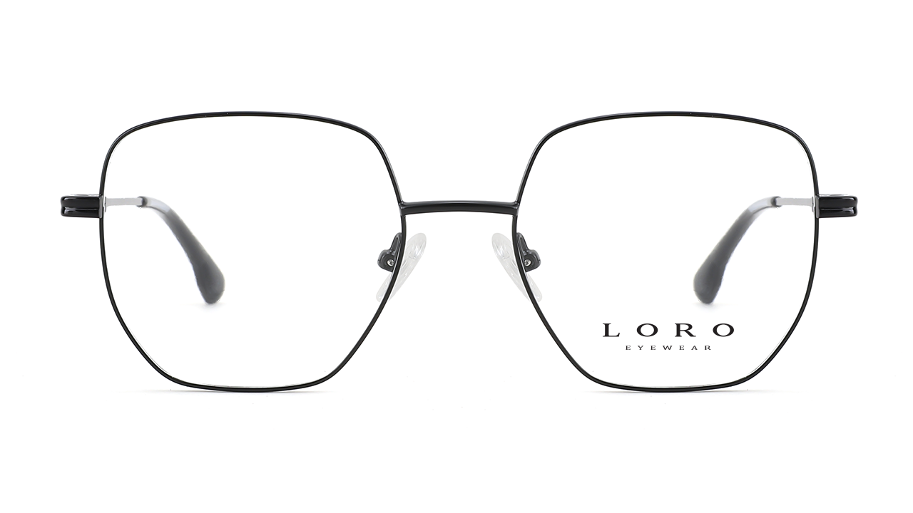 Delikatne damskie oprawki o geometrycznym, lekko kocim kształcie w kolorze klasycznej czerni. Wykonane z lekkiego, wytrzymałego metalu, łączą elegancję z nowoczesnym charakterem. Smukła linia i minimalistyczny design podkreślą rysy twarzy, dodając całości subtelnej wyrazistości.
