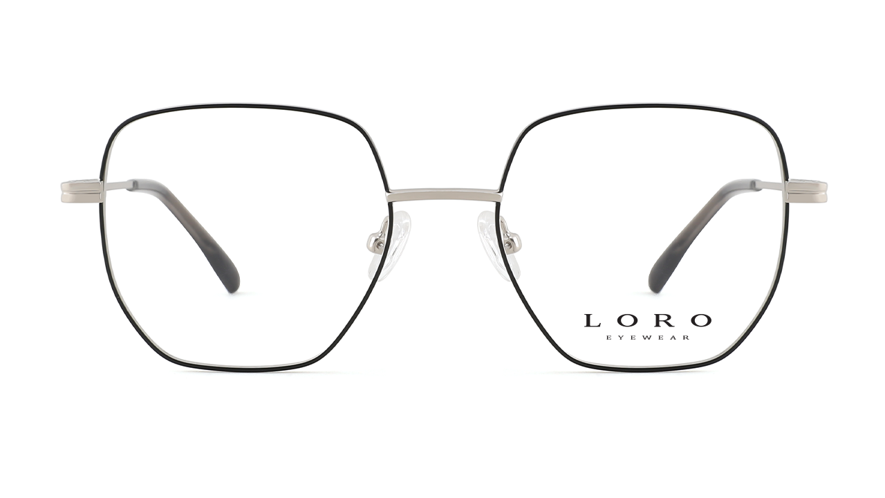 Delikatne damskie oprawki o geometrycznym, lekko kocim kształcie w odcieniu chłodnego srebra z grafitowymi końcówkami zauszników. Wykonane z lekkiego, wytrzymałego metalu, łączą elegancję z nowoczesnym charakterem. Smukła linia i minimalistyczny design podkreślą rysy twarzy, dodając całości subtelnej wyrazistości.